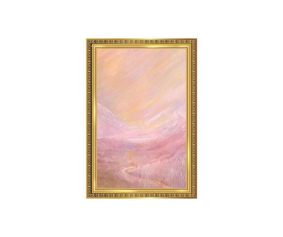 It’s a soft pink path winding through distant mountains. Gentle. Quiet. The kind of place you walk when you’re not sure where you’re going, but you trust the ground beneath your feet.